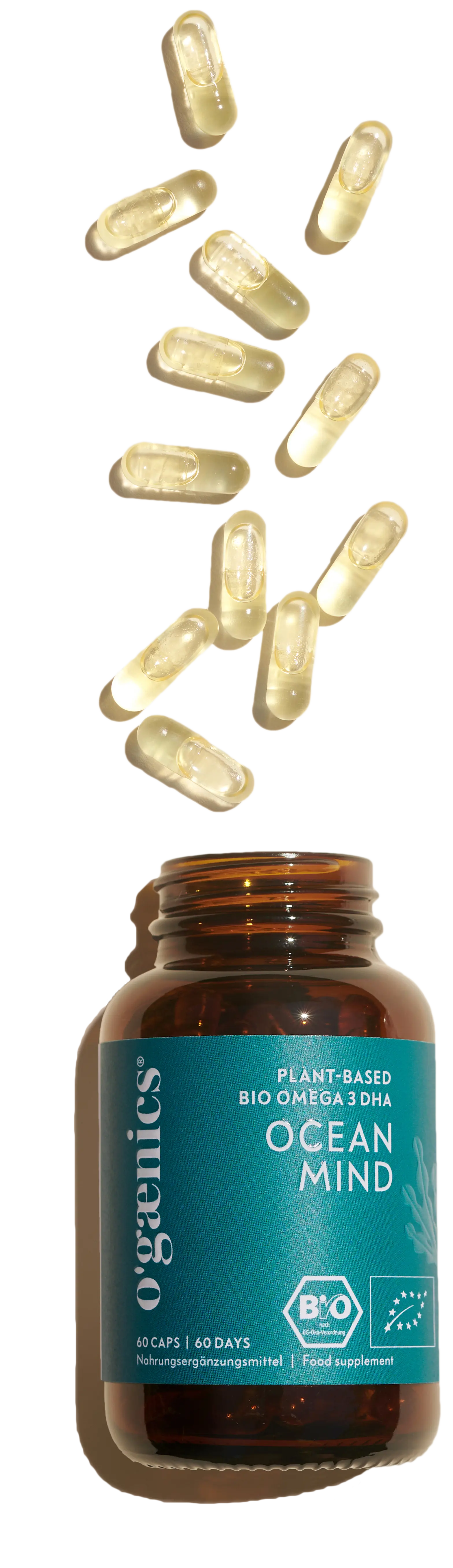 All ingredients are sourced from certified organic cultivation. All vitamins are purely plant-based and work together with natural co-nutrients. Ocean Mind is hand-picked, free from additives and genetic engineering, 100% vegan and packaged in high-quality apothecary glass.
