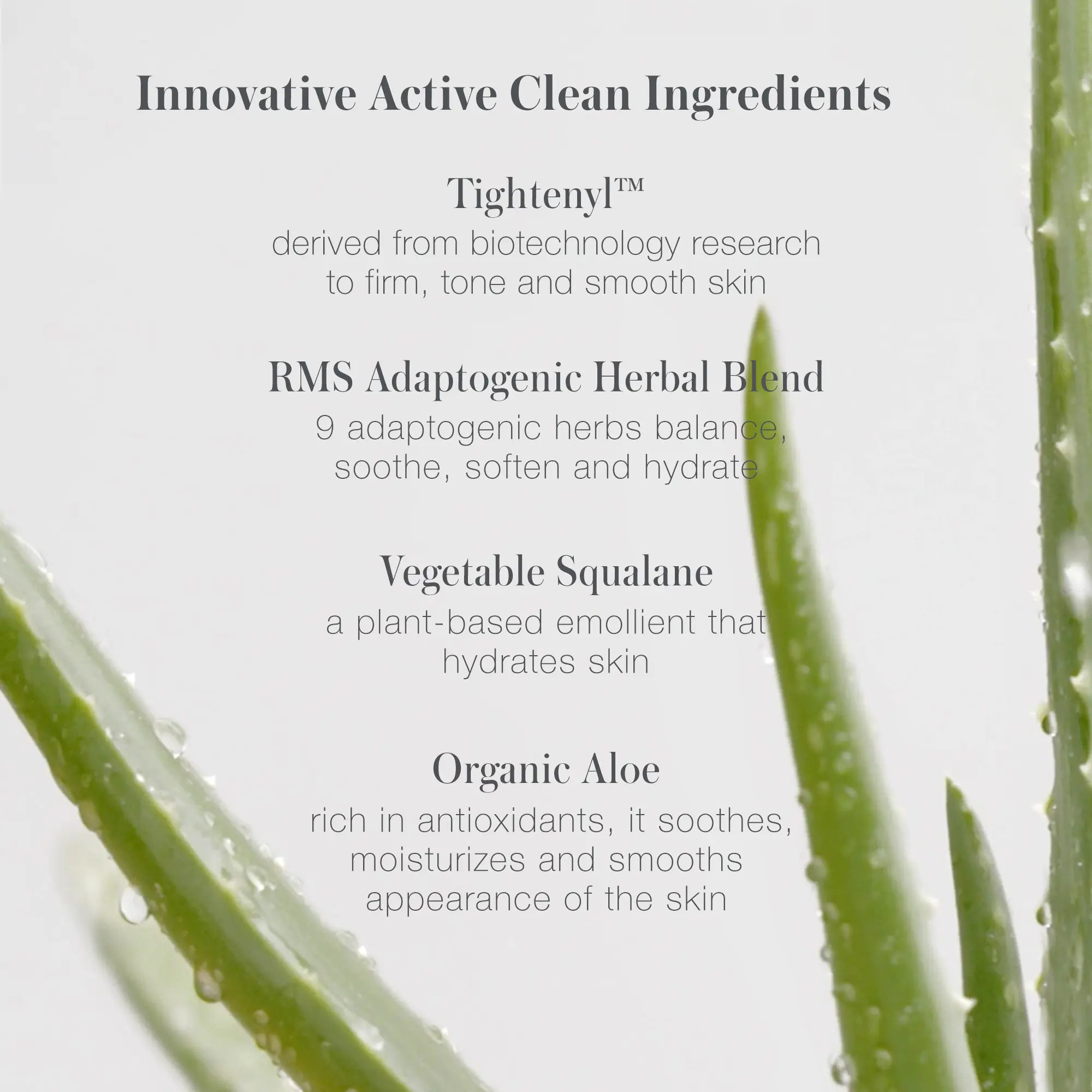 •  Mélange de plantes adaptogènes de RMS : Sélectionné à la main par Rose-Marie de RMS, ce mélange exclusif de 9 plantes adaptogènes aide à équilibrer la peau, à l'apaiser, à l'adoucir et à l'hydrater.