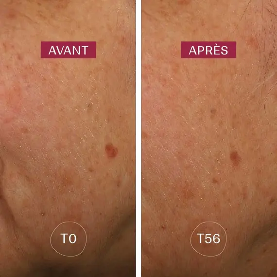 - Red Algae Extract: By acting on cellular memory, it directly targets the memory of melanocytes (cells responsible for melanin production). Its action consists of modulating their reactivity to external aggressors – UV rays, blue light, inflammation, hormonal fluctuations... This creates the conditions for genuine cellular re-education: melanin production becomes regulated, and the risk of recurrence is reduced. The formation of new spots is prevented at the source, for preventive and long-lasting action.