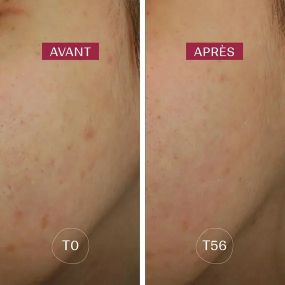 A unique dual effect to effectively prevent post-inflammatory hyperpigmentation. - Iridescent Algae Extract: By acting at the heart of the pigment-producing cell, it blocks the pigmentation pathway while breaking down already-formed pigments.