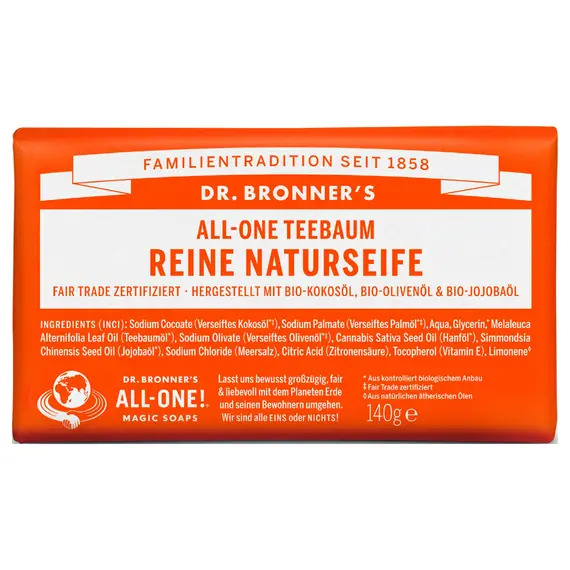 Whether it’s for cuts or skin complaints like acne, dermatitis or psoriasis – organic tea tree oil really works magic; its antiseptic effect helps to cure or at least relieve. That’s a property that we also want to retain in our natural Tea Tree soap with its base recipe of organic coconut, olive, palm kernel, hemp, and jojoba oils. It has a highly distinctive fragrance and a delicious natural piquancy. Once you’ve taken it into your heart, you’ll never want to be without it again.